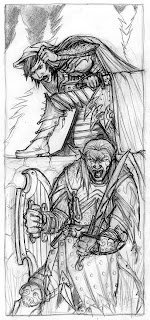 As a note, the final size is 3" x 6.75" as requested, just shown here larger for your viewing pleasure.The assignment for this week was to depict a pair of vampires. The piece had to be black and white line art and include several other key details, a full description can be found here. Jon Schindehette really raised the bar on this one. Not only is he giving out an art commission to the 'winner' but he has invited several other art directors from competing companies to have their say and possibly discover new artist. A list of those other art directors can be found here. So there will probably be a lot of new faces on the line up this Tuesday besides the regulars that participate each week, should be exciting!