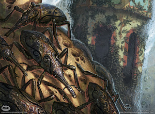 While the final for this piece was digital, the original drawings associated with this piece will debut at Illuxcon 2016 the week of Oct 19 - 23. Feel free to contact me if you are interested in making an offer ahead of time. Prints will be available soon and artist proofs will be available once the set is released and I receive them. Here is a look at the final card version of the Fretwork Colony...